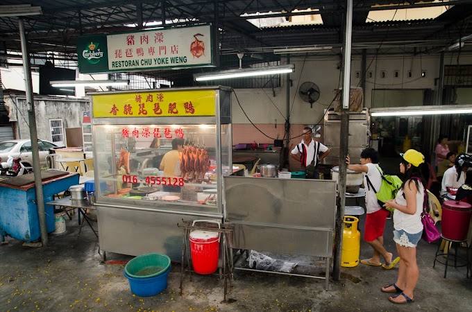 One of the most worthy things to hunt down in Penang is Restoran Chu Yoke Weng's Pei Pa duck (or Pi Pa in mandarin). It's quite funny how this small stall is called "restoran" :P